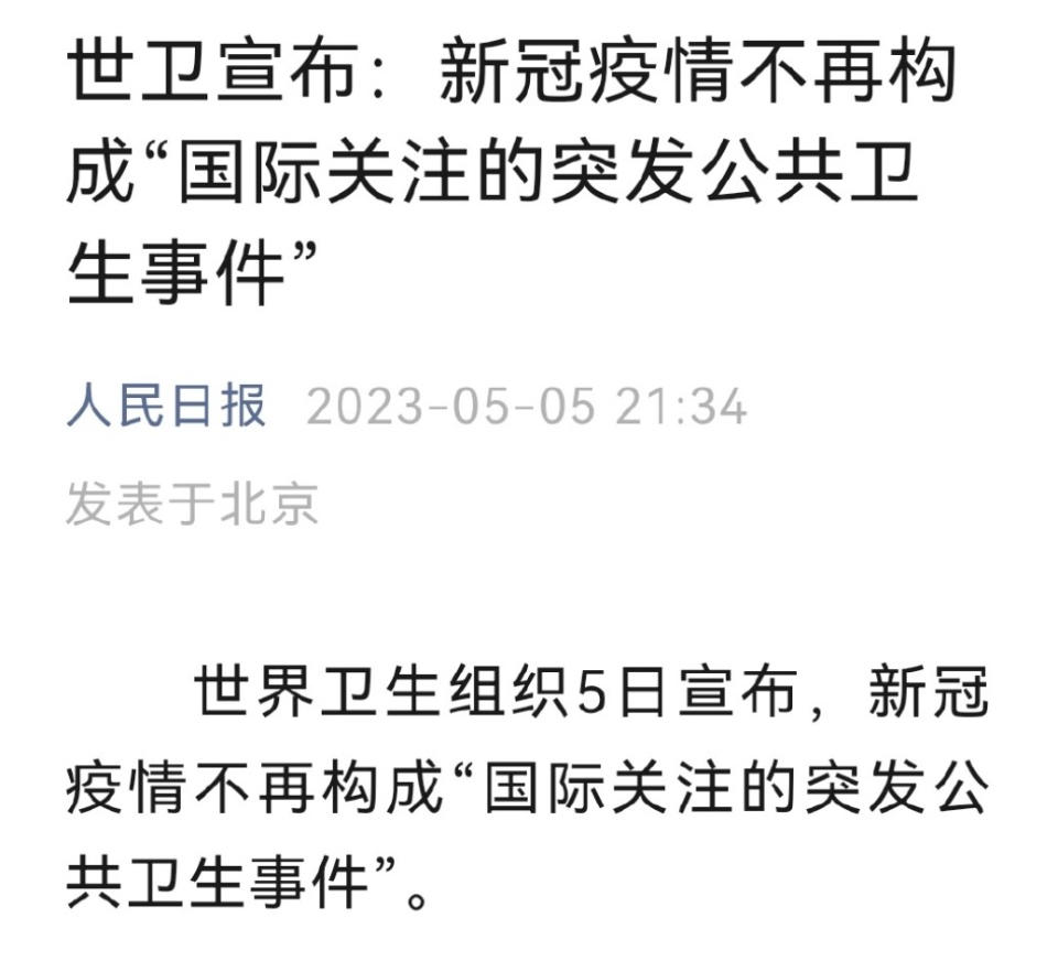 北京时间5月5日晚,世界卫生组织宣布新冠疫情不再构成国际关注的突发公共卫生事件,解除2020年1月30日拉响的最高级别警报。