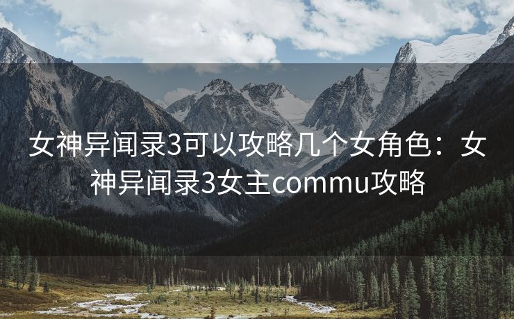 女神异闻录3中共有五位女角色可以攻略,每位角色都有着独特的性格和背景。玩家需要在游戏过程中,通过与她们的互动和完成任务,逐渐揭开她们的秘密,并与她们发展感情线。祝您在游戏中玩得愉快!
